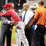El inmortal dominicano Juan Marichal lanzó la primera bola en la Noche Dominicana en el Hiram Bithorn. (Foto: Esdel Palermo)